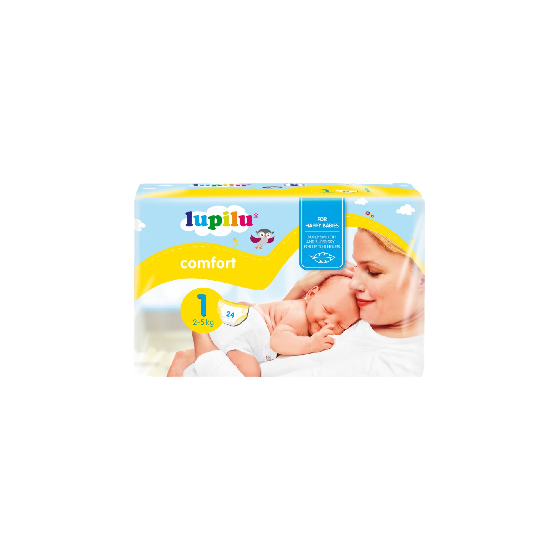Pakuotėje 24 vnt. Lupilu sauskelnių — labai patogu pasiimti vykstant į gimdymo namus.