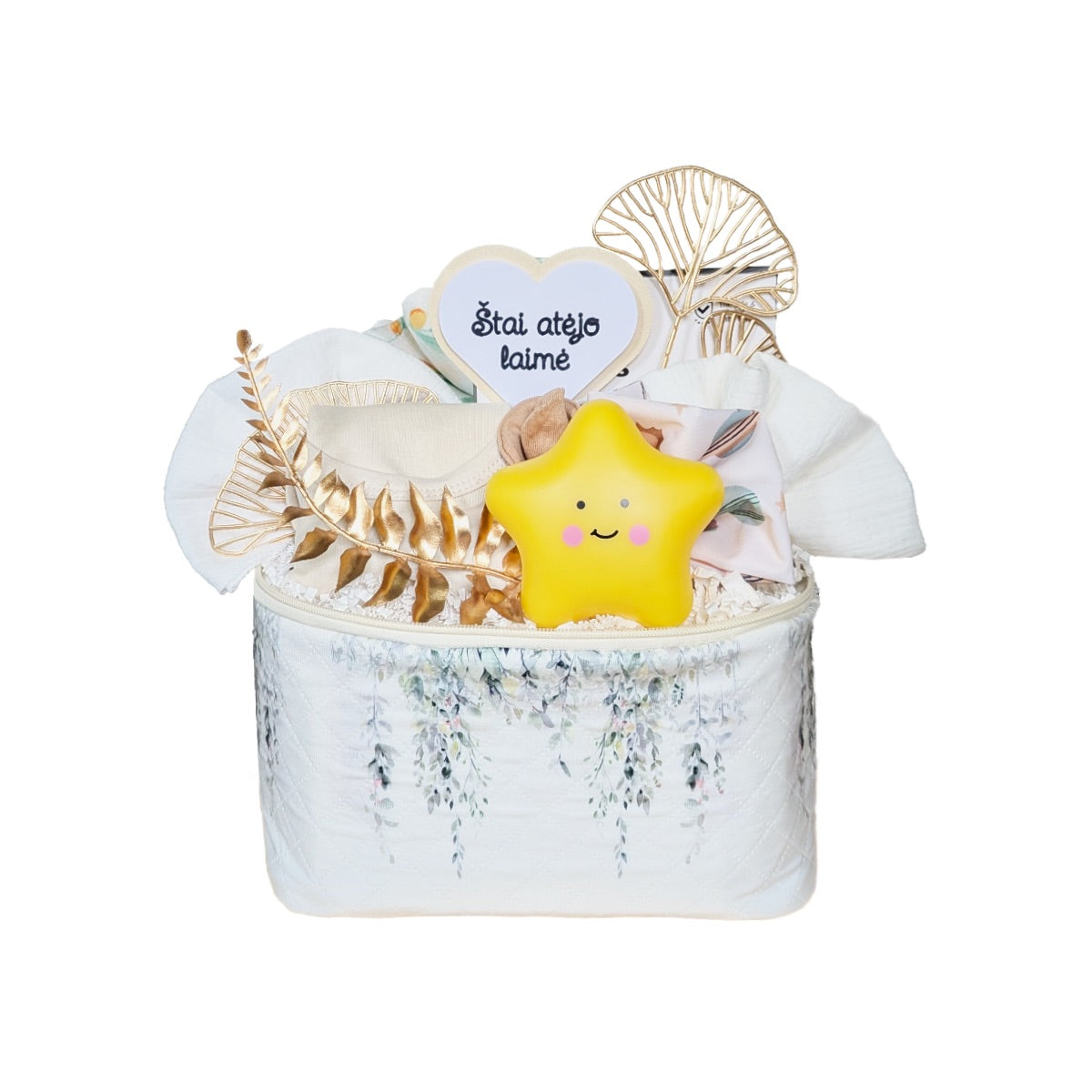 Naujagimio dovanų krepšelis "Štai atėjo laimė"